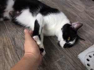 私が手を差し出すと手のひらをふみふみするハナちゃん、これは飼うと楽しい猫になりますよー。