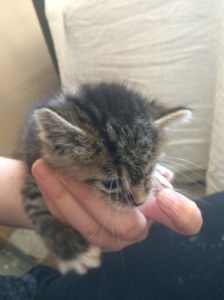 昨年末のある朝早く、やけにニャーニャー鳴いてる子猫の声が外から聞こえて目が覚めました。どっかにはまって動けなくなってんなら助けてやろうと思って外に出たら、ご近所さんが子猫を箱に入れて立ってて「うちの庭にとても弱った子猫が3匹いる。母猫がゆうべから帰って来ないようで一晩中鳴いてて、どうしようかと思って・・・」という話でじゃあ私が世話しますよ、と引き受けたのです。