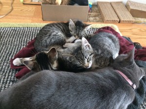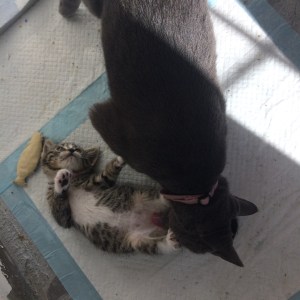 おかげさまで三匹とも無事に育ちました。そしてこれがまたビビにかわいがられるようになるんですよ。