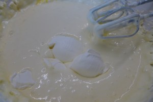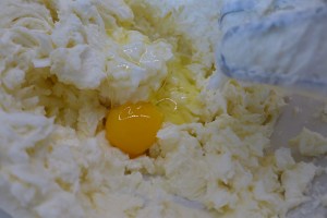 2)次に卵を加えますが、この時点でクリームチーズのダマがなくなっているようにしてください。卵は水分量が多いので、ダマのある状態に加えてしまったらそのあといくら撹拌してもなかなかダマはなくせません。