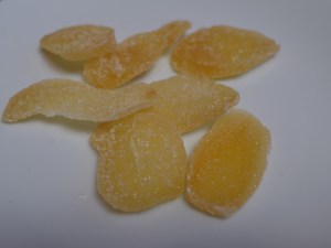 砂糖がけの干ししょうが。日本でも売ってるんでは。