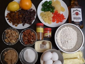 買い出しだ。さくらんぼにシトロン、ショウガやヴァニラ、ハワイ産のパインアップル、オレンジの皮や干しぶどう、くるみにウィスキー、そうそう、小麦粉もバターも卵もスパイスも香味料も山ほど。