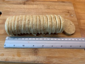 5)ひとかたまりになったら成型します。一本の棒にして、一つ20g程度の大きさになるように切りわけます。