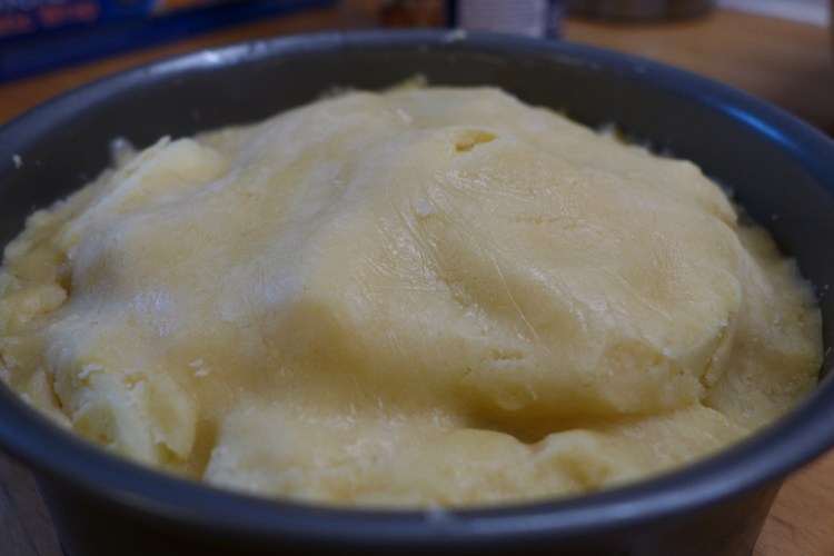 8)型に薄くバター(分量外)を塗って小麦粉(分量外)を振っておきます。オーブンを180度(華氏360度)に温めておきます。
