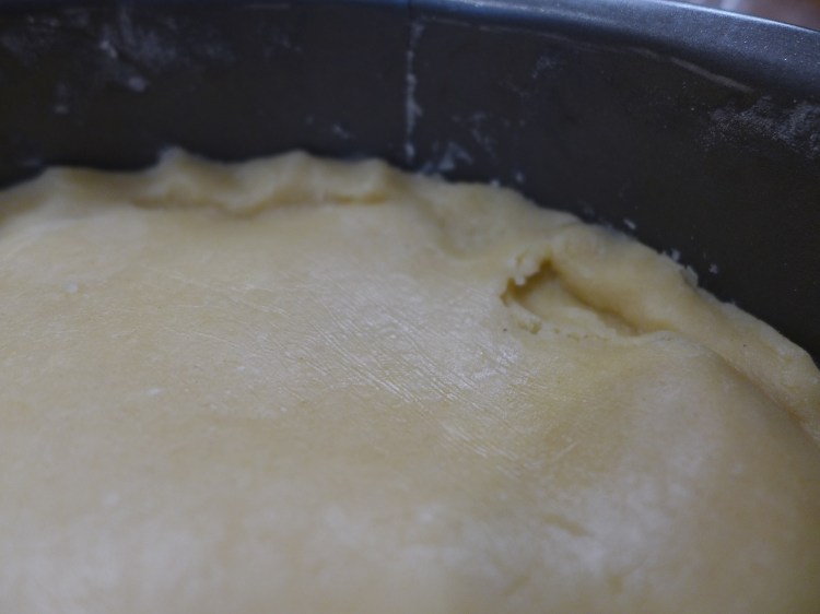 11)残った1/3の生地を、型と同じくらいの大きさに伸ばします。